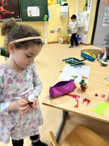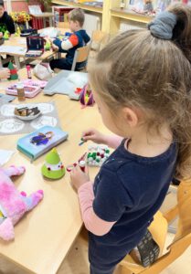 Nach dem Frühstück durften alle Kinder in ihre gewählten Bastelprojekte und widmeten sich dort unterschiedlichen Weihnachtsbasteleien.